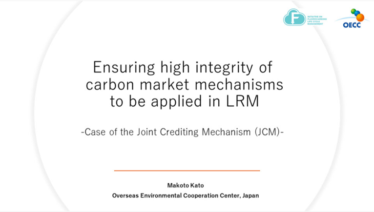オゾン層破壊物質(ODS)およびハイドロフルオロカーボン(HFC)の耐用年数経過後の管理は、近年、モントリオール議定書を取り巻く関係者の間でも大きな課題として注目されています。この課題を解消するため、CC Labは、世界中の破壊施設のマッピングと検証を行い、利用可能な技術、処理能力、そして処分を待つガスの規模を記録してきました。 OECC加藤理事は、日本の二国間クレジット制度(JCM)の経験のうち、特に堅牢なMRVやパリ協定6条2項の下での管理により、十全性の高い炭素クレジットの生成が行われる仕組みについてビデオプレゼンテーションを行いました。 資料・動画ダウンロードOECC加藤理事の発表資料 OECC加藤理事の発表録画データはこちら |
